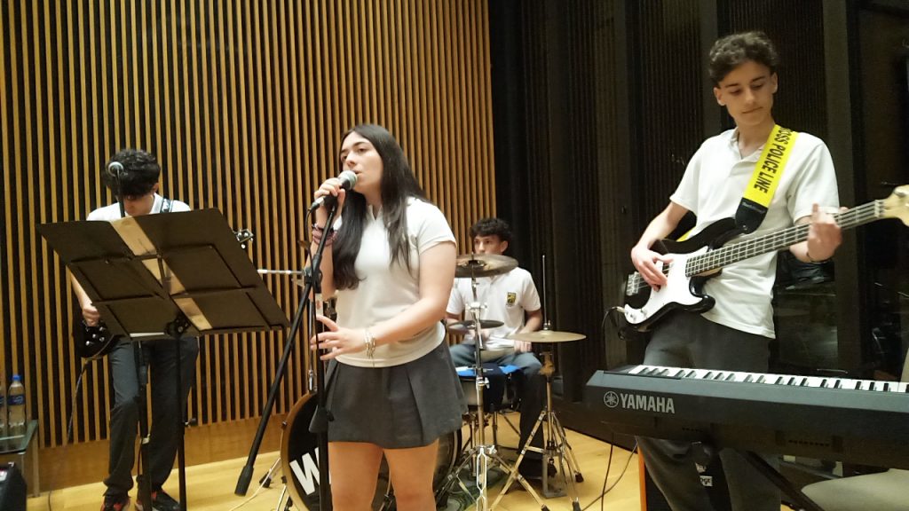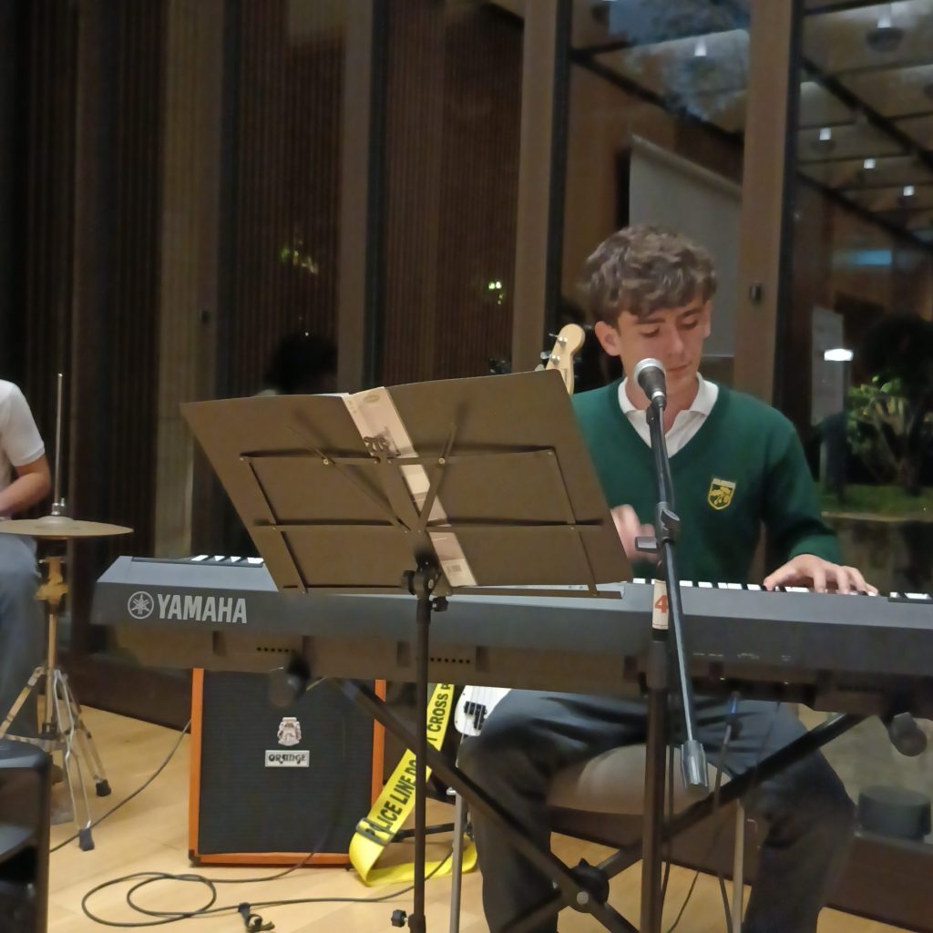 Durante el evento, alumnos del Nivel Secundario que integran las bandas WAS? y Mordizco fueron invitados a acompañar la jornada con un repertorio de cinco temas musicales, culminando con una interpretación de clásicos del pop alemán, que fue recibida con gran entusiasmo por los presentes. Posteriormente, participaron de la recepción ofrecida por el Sr. Embajador y su esposa.